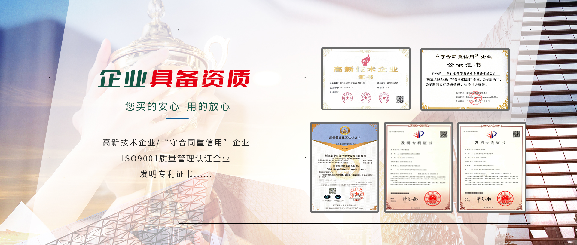 公司榮譽:先后被認(rèn)定為國家高新技術(shù)企業(yè),浙江省高新技術(shù)企業(yè),浙江省工商業(yè)守合同重信用單位,浙江省科技型中小企業(yè),金華市專利示范企業(yè),金華市誠信民營企業(yè)等榮譽。